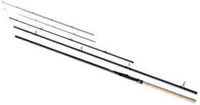Eine Rute, mit einer Länge von 2,40 m bis 3,00 m und einer sehr feinen, meistens neonfarbenen Spitze für die Bisserkennung.